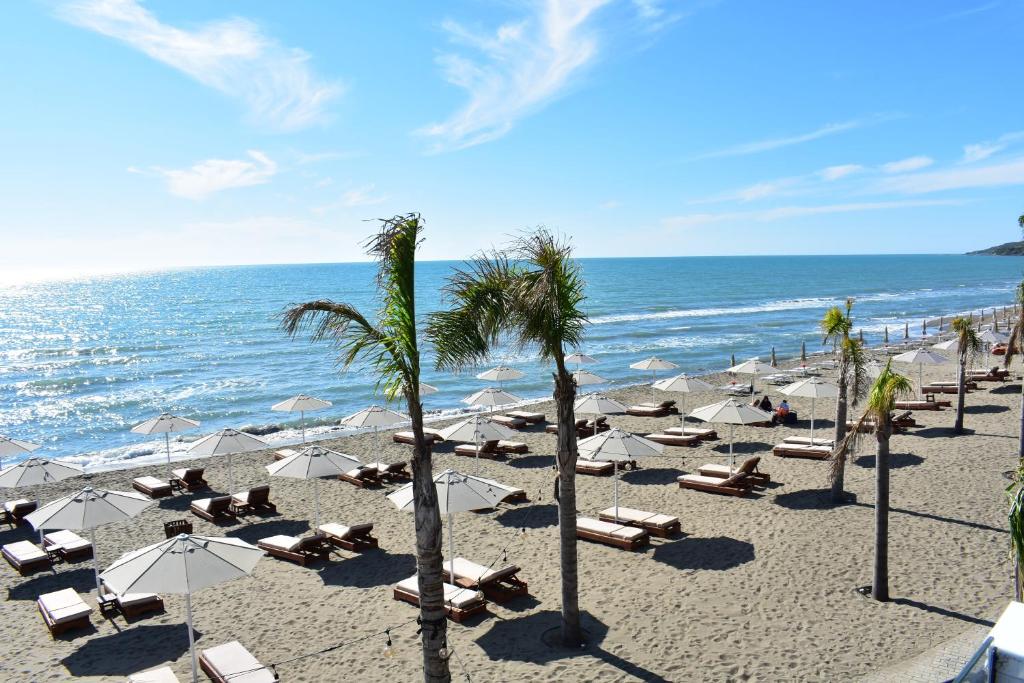 Located just a few steps from the sea, Harmonia Hotel offers the perfect blend of comfort and nature, with direct access to a private sandy beach equipped with sunbeds, umbrellas, showers, and a relaxing beach bar.